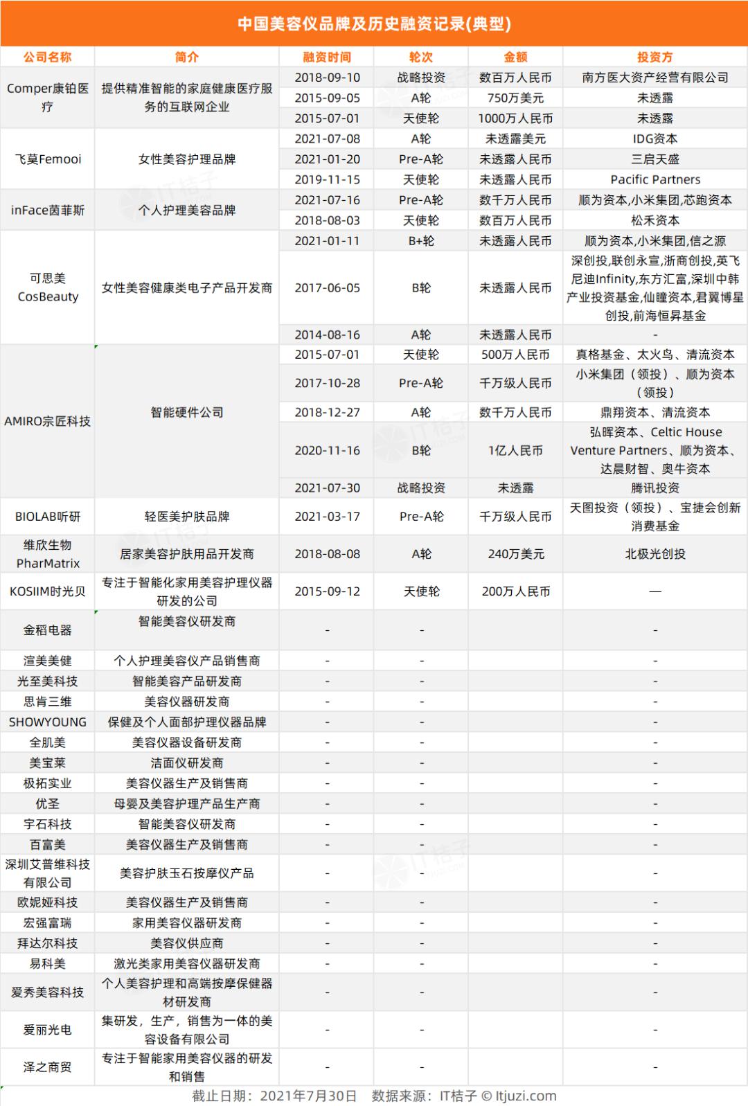 据IT 桔子统计,截至今年7年底,国内和美容仪相关的品牌超 29 家,其中有8家获得过融资,总金额超过 5.2 亿元。