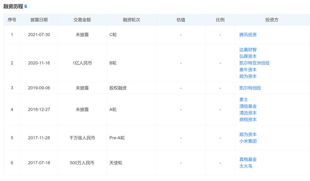 AMIRO的快速崛起也少不了资本的加持。据天眼查统计,AMIRO先后有过6次融资,公开的最大一笔上亿元。在AMIRO的投资方中,有不少知名机构的身影,比如真格基金、顺为资本、清流资本、达晨财智等。