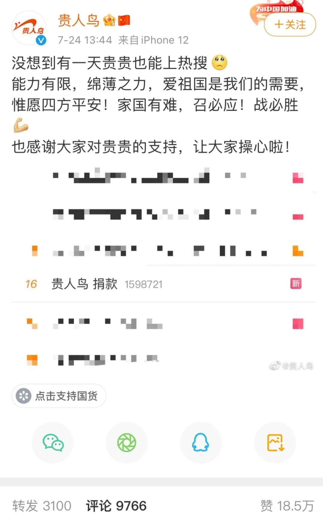 而默默向河南进行物资和资金捐赠的贵人鸟,既没有主动公布自己的捐赠金额也没在微博宣传此事,这种“做好事不留名”的举动一下子击中了网友们的“泪点”。