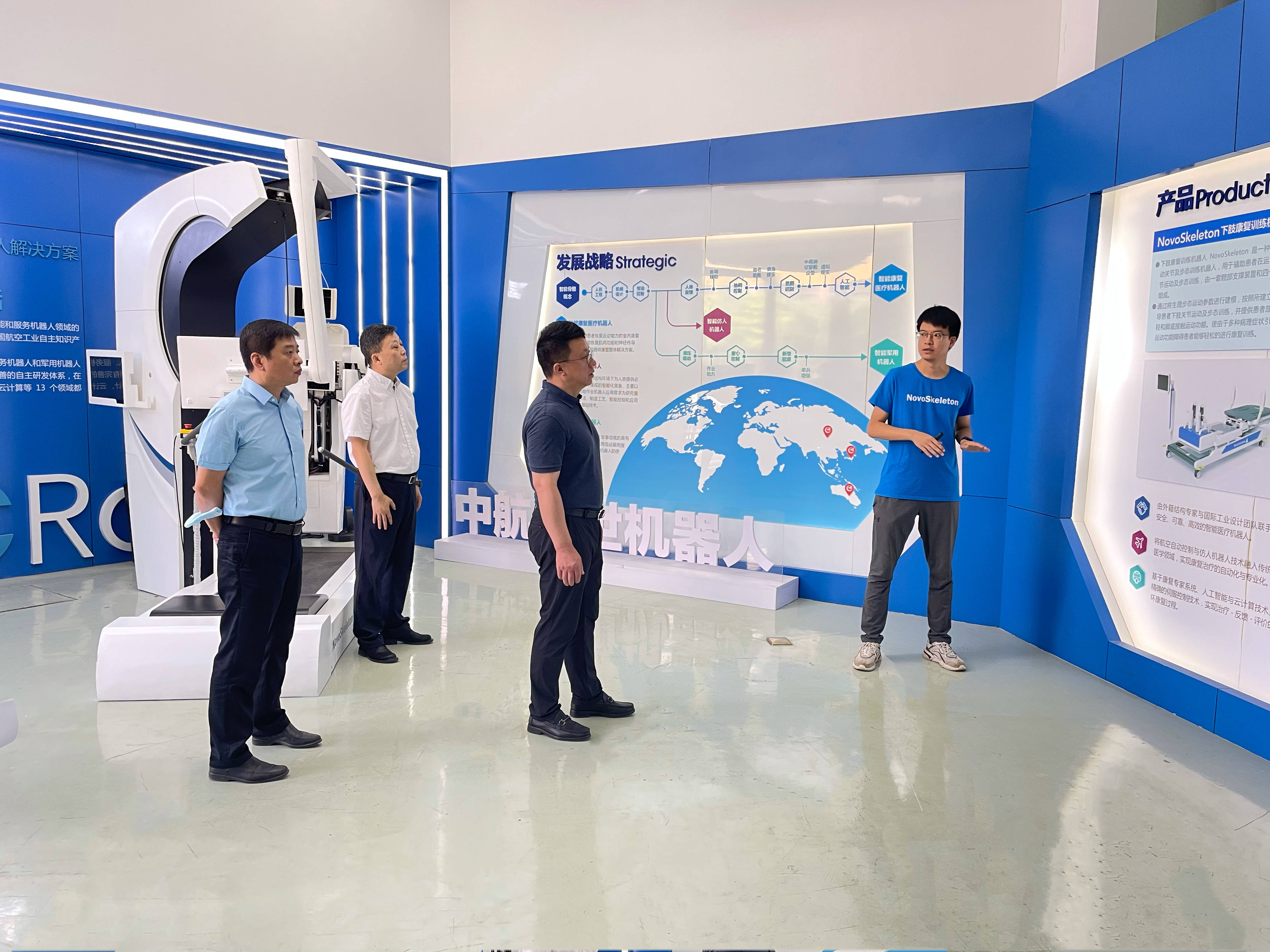 马瑞向马翔区长一行详细介绍了由中航创世自主研发的全系智慧康复产品,并向马翔区长一行汇报了科研项目工作推进情况,企业经营现状,市场开拓情况,新产品研发进度等。