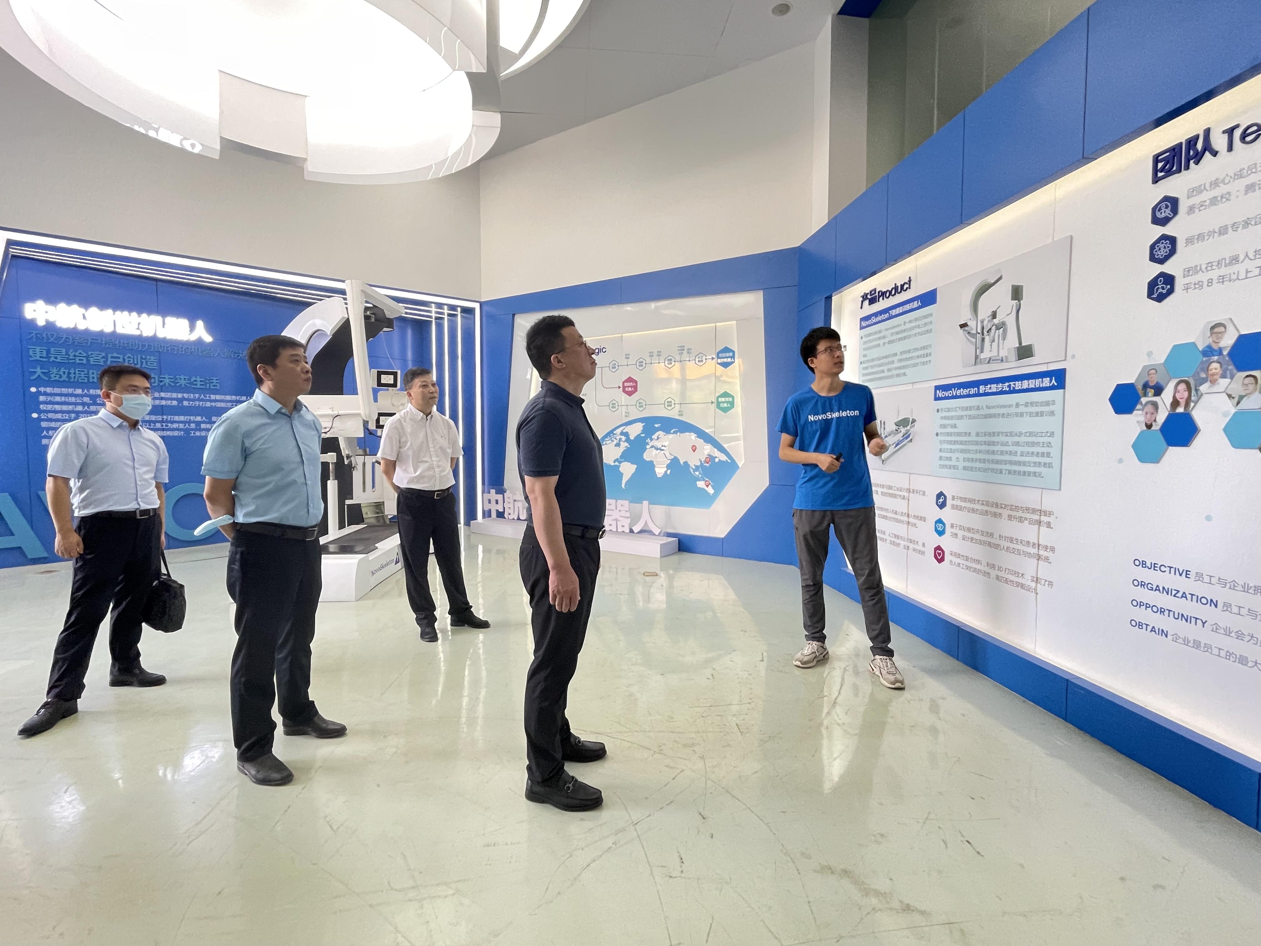 2021年8月6日上午,为深入了解碑林区科技产业园发展现状及重点科研项目工作推进情况,由西安市碑林区委副书记、区长马翔带队,区政府办、区发改委、区科技局、区住建局、区城管局、区投资合作局、碑林科技产业管理办公室、市资源规划局碑林分局主要负责同志一行莅临中航创世机器人智造中心调研,中航创世技术总监马瑞全程陪同调研并详细汇报企业发展及项目进度情况。