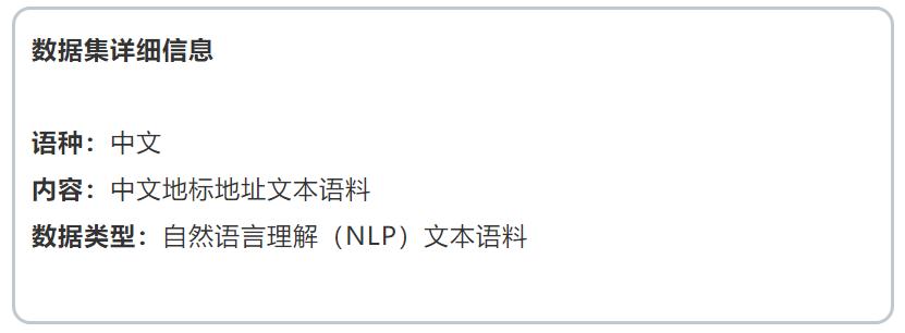 自然语言理解作为人工智能核心课题之一,以语言学为基础涵盖各个学科知识,人工智能模型训练更离不开NLP数据训练,MagicHub.io社区开源用于AI识别地标地址的数据。
