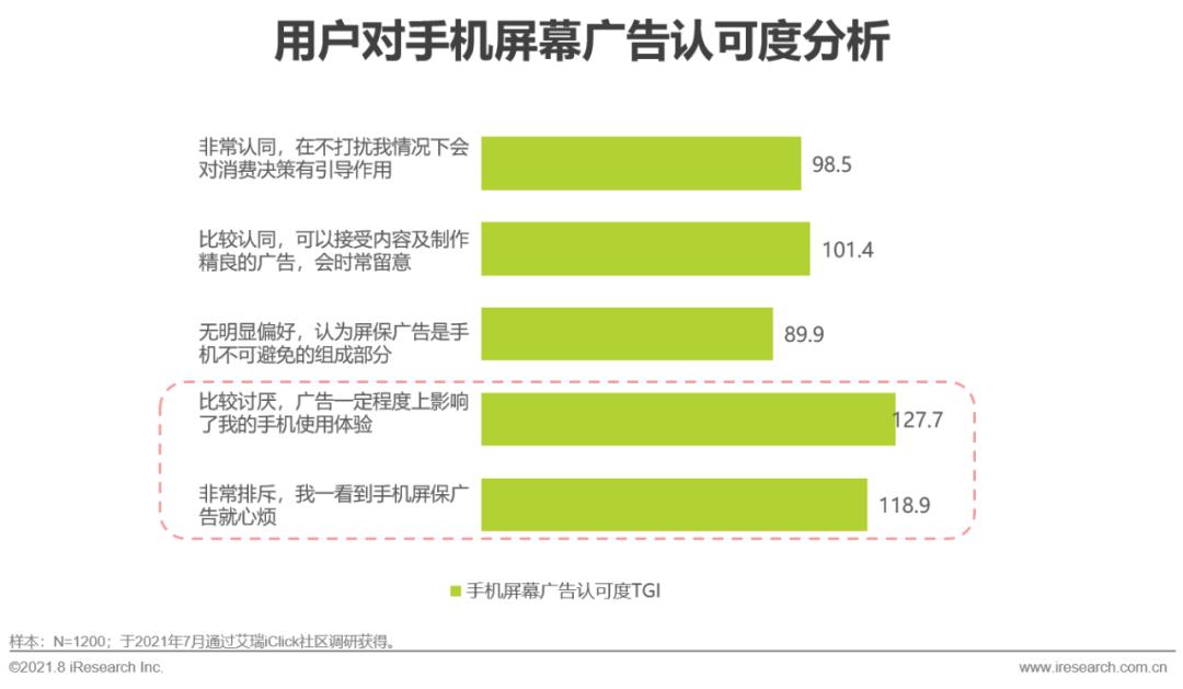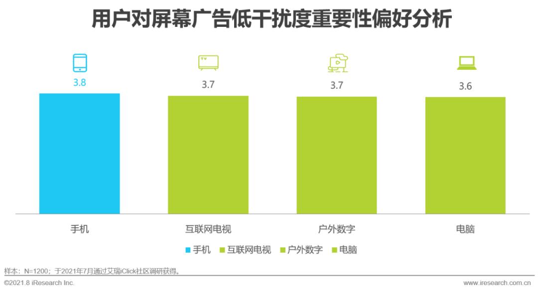 用户对手机屏幕广告敏感度高,广告低干扰度偏好强