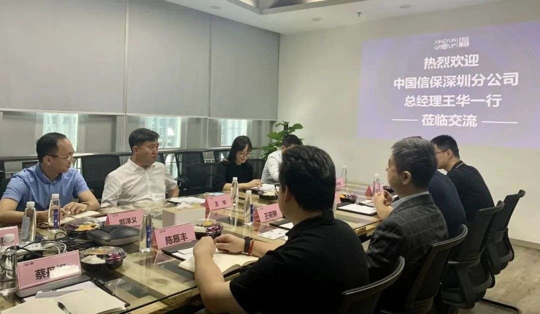8月4日,中国出口信用保险公司深圳分公司王华总经理等一行人莅临行云集团交流,行云集团联合创始人 高级副总裁Yankee、行云集团财策中心总经理Oliver、行云集团副总裁Ben陪同接待。