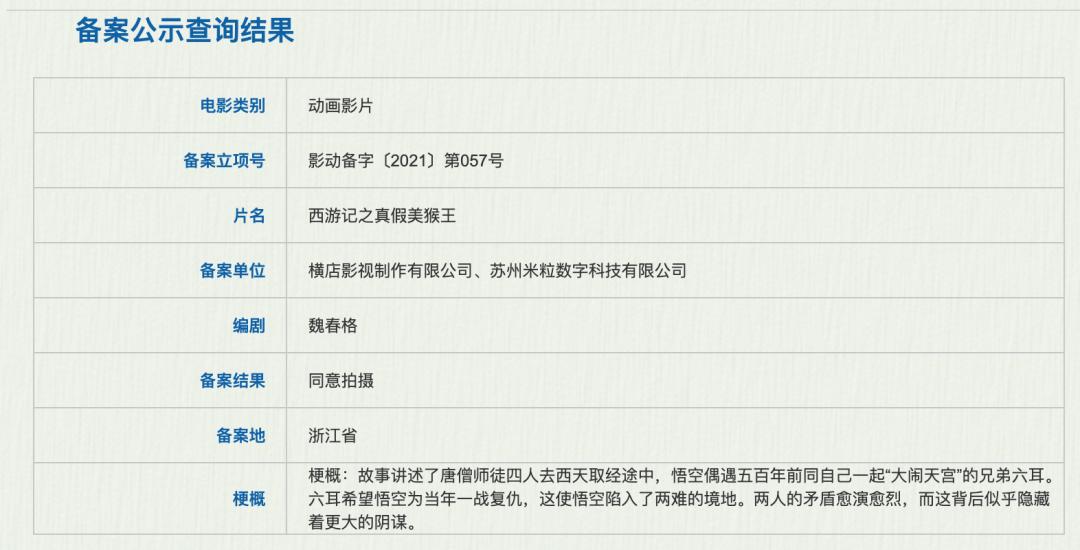 横店影业和米粒影视备案的《西游记之真假美猴王》,编剧是魏春格。