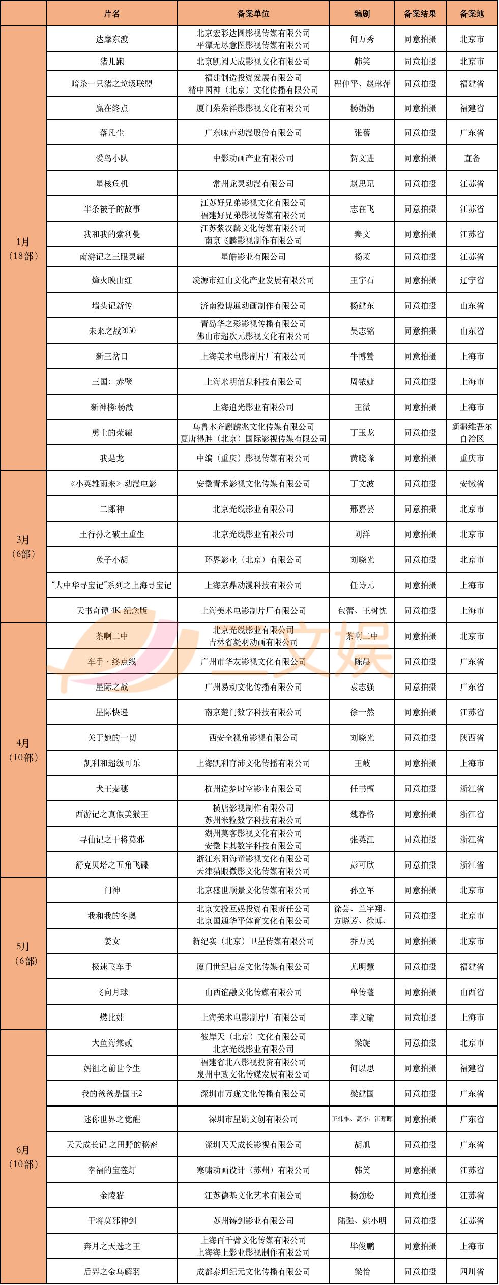 8月6日,《国家电影局关于2021年6月全国电影剧本(梗概)备案、立项公示的通知》公布。至此,2021年上半年国产动画电影备案情况出炉。