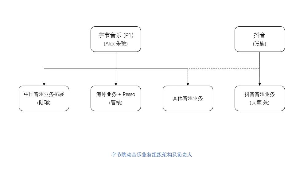 在今年,字节跳动已经成立音乐事业部。 据接近字节音乐业务的知情人士向音乐先声透露,目前字节音乐业务旗下设立了三个相关业务组:陆瑒负责中国音乐业务拓展,其中包括版权合作、内容厂牌(即银河方舟)、投资和推广等;曹桢负责Resso和海外业务;支颖负责抖音音乐。
