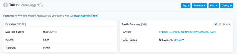 根据设定,Space Poggers NFT,是登上太空方舟的船票。每个部落都有 1000 个 Pogger NFT,因此其 NFT 总量为 12000 个(注:目前智能合约中总量为 11686)。