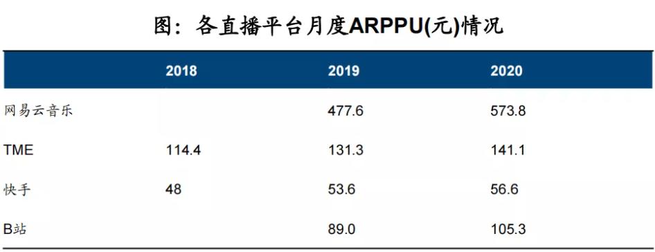 从ARPPU(每用户平均收入)来看,2020年网易云音乐直播业务ARPPU为573.8元,腾讯音乐社交及娱乐的ARPPU为141.1元,相差超四倍。看来直播真的是颗“摇钱树”,不过丁磊在电话会议中说过,直播只是一种手段,不会拘泥于其中。