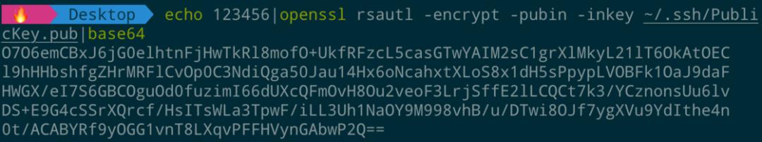 但是可以看出,经过加密之后的 123456 变成了一串乱码,这是因为 RSA 加密的结果是二进制流,而非普通的可打印字符,那么这还怎么使用?这时候,就可以请出 base64 编码了,它可以将任何信息流都转换为特定字符集内的编码。
