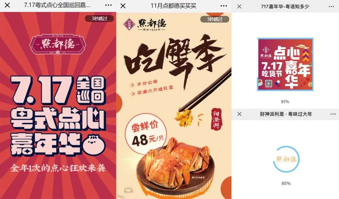 2.强化品牌感:点都德将游戏内容和品牌高度关联。一方面则将产品植入游戏页面中,比如月饼消消乐,早茶品类转盘等,并使用动图增强冲击力、趣味性;