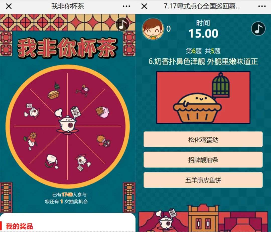 1.将广府文化融入游戏:推出「粤语知多少」的答题小活动,科普冷门精髓的粤语小知识。题目中“人头饭”、“打孖嚟”与早茶文化息息相关,让消费者体验浓郁的粤式文化,也增强了消费者与品牌的粘性;
