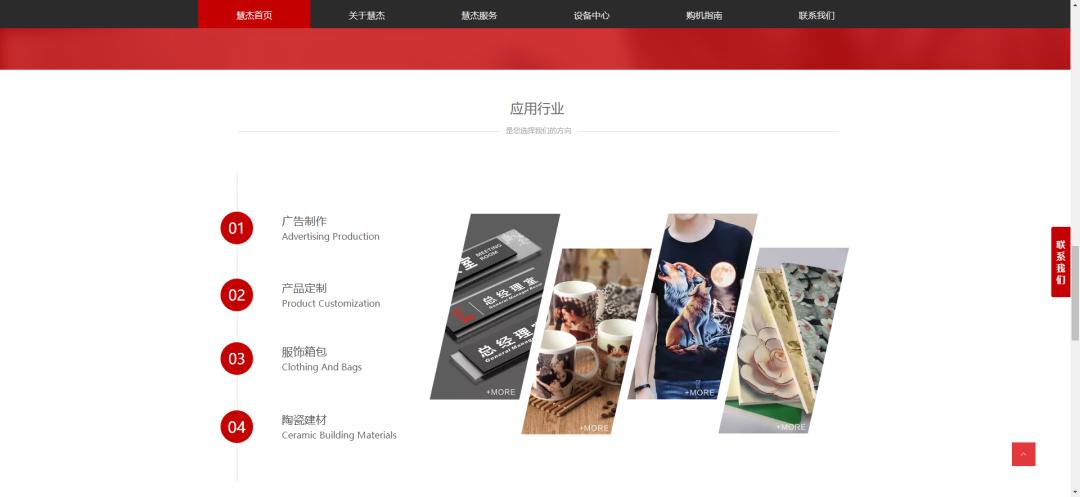 从“慧杰机械”官网上看,也正是如此。如设置产品页跳转、应用行业跳转、购机指导页跳转等模块,每个子页面都具有详尽的产品规格、成品效果展示信息。为的就是让“使用者”与“采购者”了解更多信息,从而以其为依据说服决策者。
