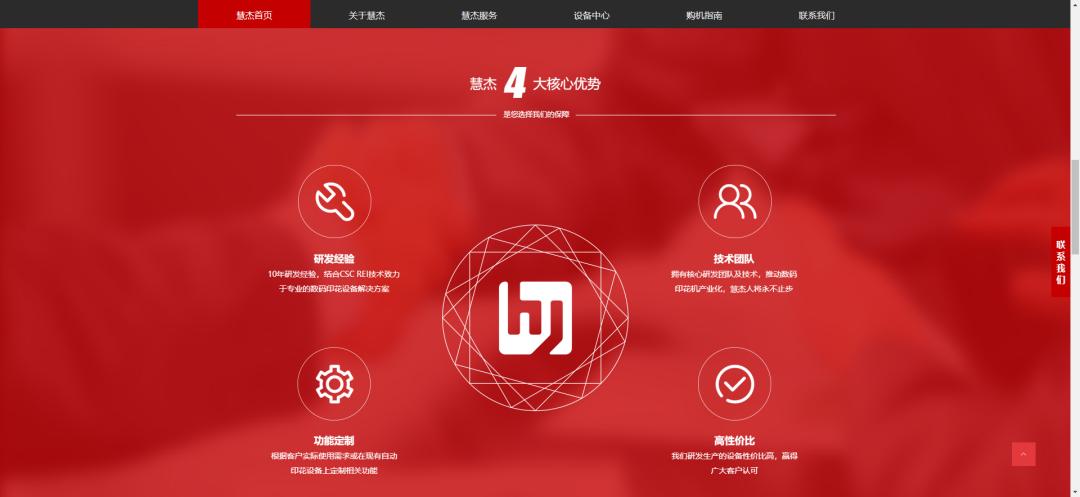 因此,我们可以看到“慧杰机械”官网上,将专利荣誉、企业优势分别放在首页的banner图与网页中部的显眼位置,省去浏览者寻找的时间,进一步降低决策者的决策成本。