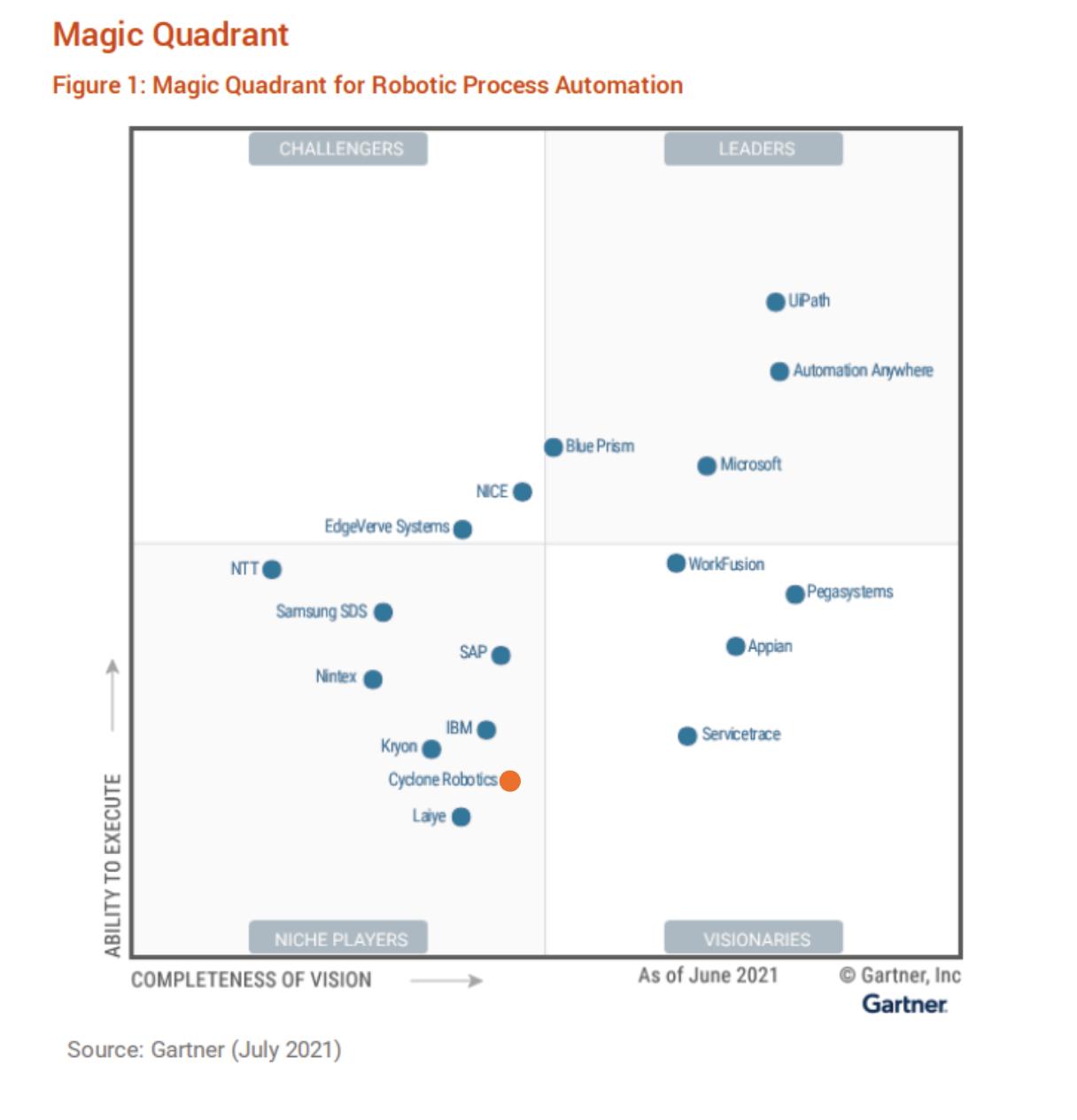 产品战略比肩巨头,弘玑Cyclone上榜Gartner《RPA魔力象限》