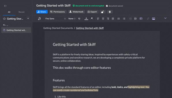 一款文档加密神器:如果您担心Google会侵入并损害文档,不妨可以看看Skiff的文档加密方案。Skiff可以让电脑里所有的文档都经过端到端加密,因此即使是Skiff应用程序后台也看不到文档里面的内容。并且,Skiff这款app为每个文档都添加水印或密码保护,让你的文档更加安全。无论您是否担心隐私,Skiff也是一款使用起来令人放心、令人愉快的文档神器。