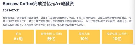 7月21日晚上,Seesaw咖啡对外宣布已完成A+轮过亿元融资,由喜茶入股,老股东弘毅百福跟投。此消息一出,迅速成为行业话题中心。而原因在于: