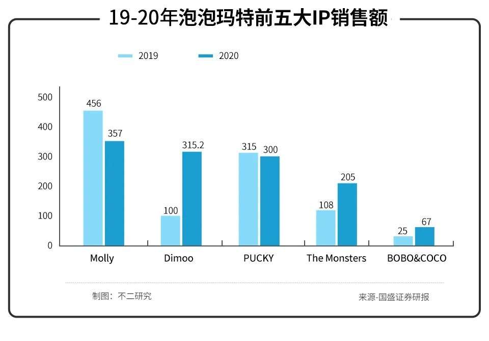 单一IP依赖性过高会对营收产生较大影响,其中老牌爆款Molly2020年表现乏力,销售额为3.57亿元,同比下降9910万元,收入占比为14.2%,同比下降12.9%,对2020年总营收造成拖累。