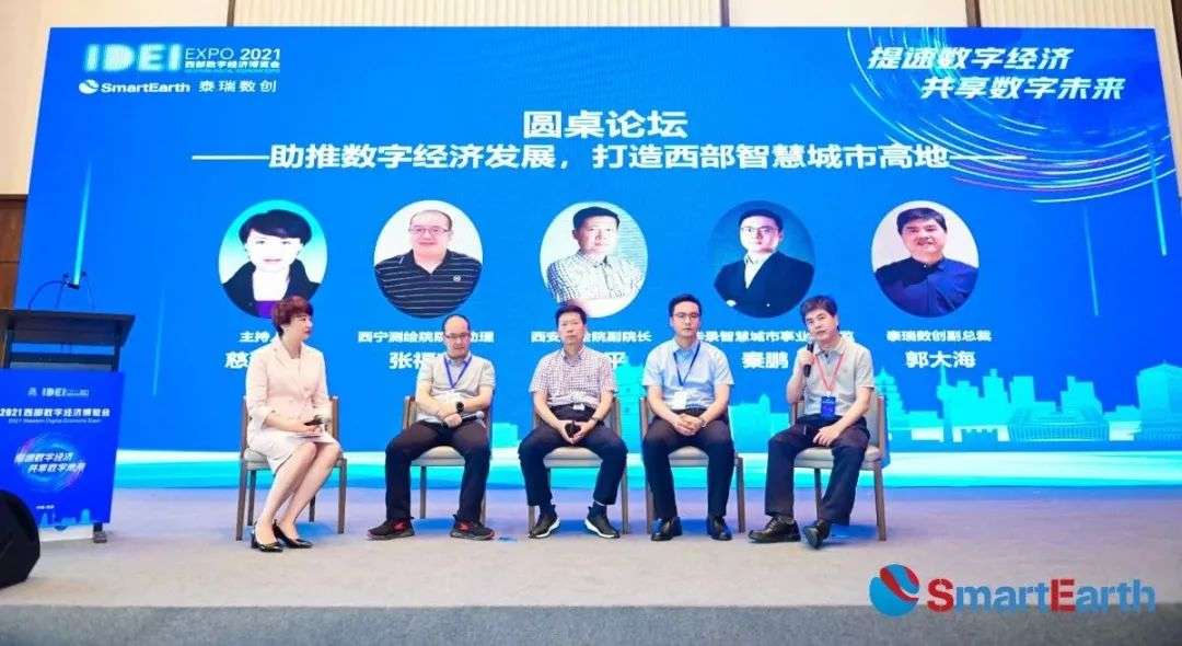 在随后的圆桌论坛环节,西安测绘院副院长张周平、西宁测绘院院长助理张副存、易华录智慧城市事业部总监秦鹏、泰瑞数创科技(北京)有限公司副总裁郭大海围绕“助推数字经济发展,打造西部智慧城市高地”展开讨论,西安市大数据资源管理局机关党委专职副书记慈澍馨主持了本场圆桌论坛。