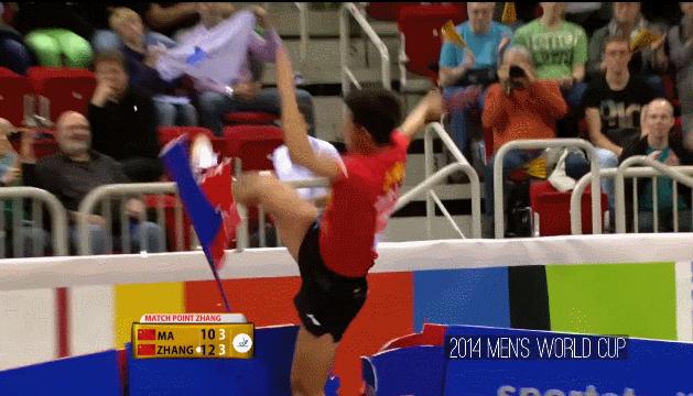 曾经在一次比赛中,为了找回打飞的球,张继科弄乱了广告板。