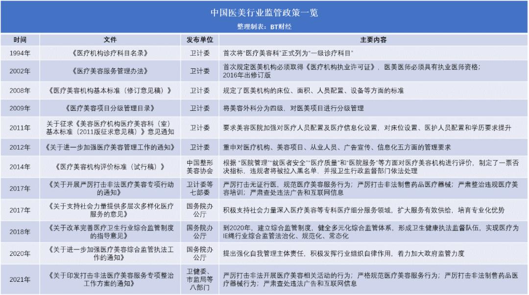 随着医美行业乱象层出不穷,政策日益收紧,自2017年后迎来了严监管时代,国家卫生计生委联合多部门开展了严厉打击非法医疗美容行为的专项行动。