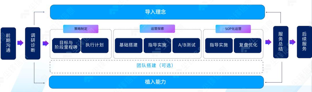 尘锋信息除了为企业提供一站式社交化客户运营管理平台外,尘锋信息率先关注到数字化工具在企业实践应用过程中遇到的种种困境,在业内率先推出客户运营顾问服务,为企业提供社交化运营代练和托管两大方向的1v1服务。