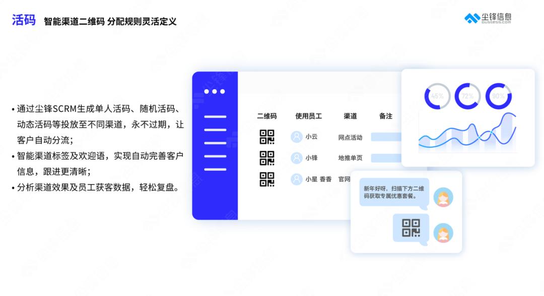 而使用企业微信配合尘锋SCRM的活码功能,可以解决前文提及的种种问题。