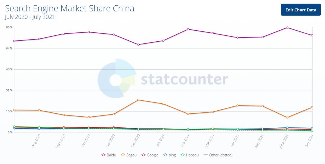 首先是搜索引擎市场难以突破。从StatCounter的2021年7月国内搜索引擎市场数据来看,百度以73.65%的份额排名第一,搜狗市场份额为19.13%排名第二,与第三名微软Bing(2.93%)拉开差距的同时,距离百度又太多遥远,处在一个不上不下的位置。无论是国内市场还是国外市场,搜狗似乎很难找到合适的突破点,获取新的市场份额增长。