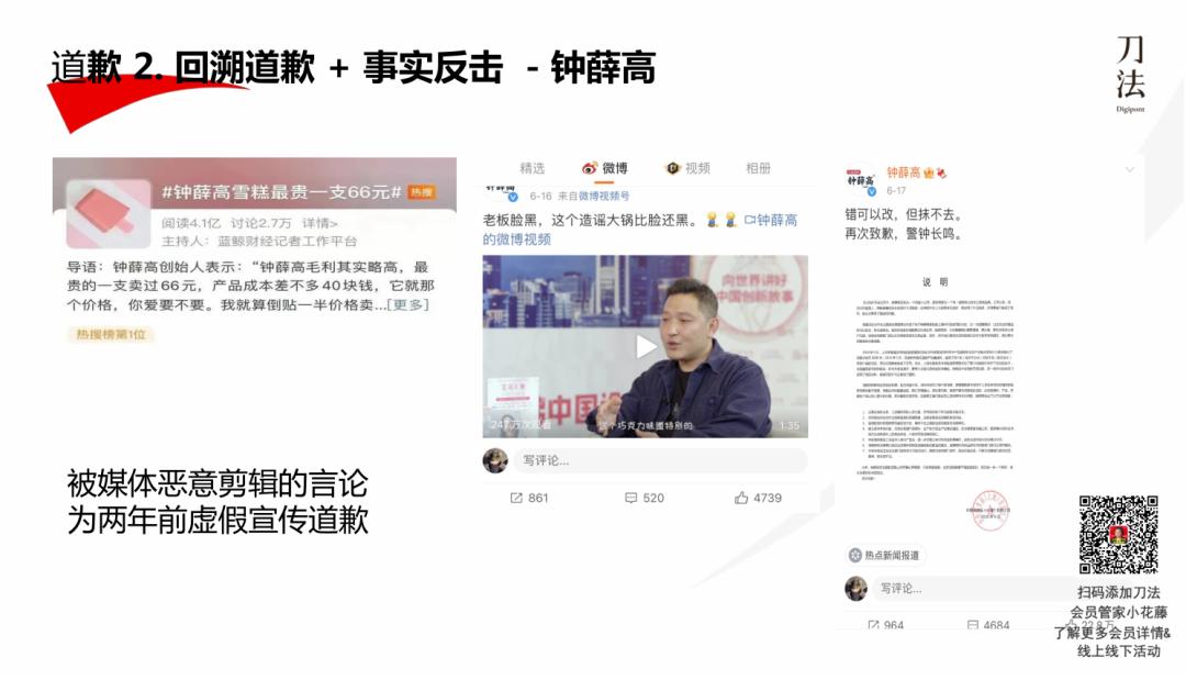 人们在讨论这个行为值不值,我认为这完全取决于钟薛高创始人对这件事的看法。他选择彻底地坦诚,对于被错误剪辑的事情,说清楚;对于自己犯的错误,肯承认。尽管这不符合我们推荐的常用方法,只集中于出事问题去处理,不过这反映了创始人的价值观。