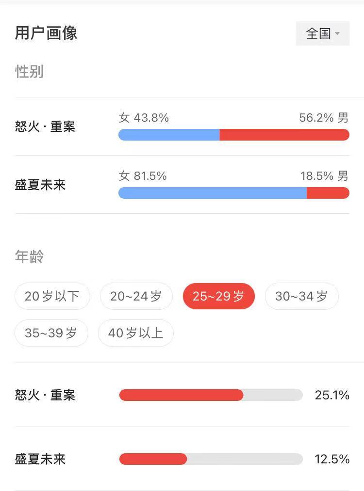 寻找《怒火·重案》突围的原因,或许能从受众人群里找到答案。《怒火·重案》豆瓣开分达到7.7分,累计想看人数达到40.6万,对比《盛夏未来》的口碑与想看热度,《怒火·重案》并没有优势,但是《怒火·重案》在近几年的港片中,口碑已经进入上游行列,电影热度有了发酵的基础。