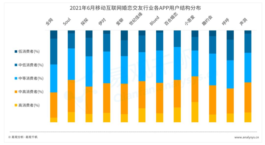 对比全网用户,从各平台的用户付费能力看,中高消费群体比重普遍高于网民平均水平。根据相关分析机构测算,2021年在线婚恋交友领域市场规模将突破70亿,并且行业潜力尚待发掘。