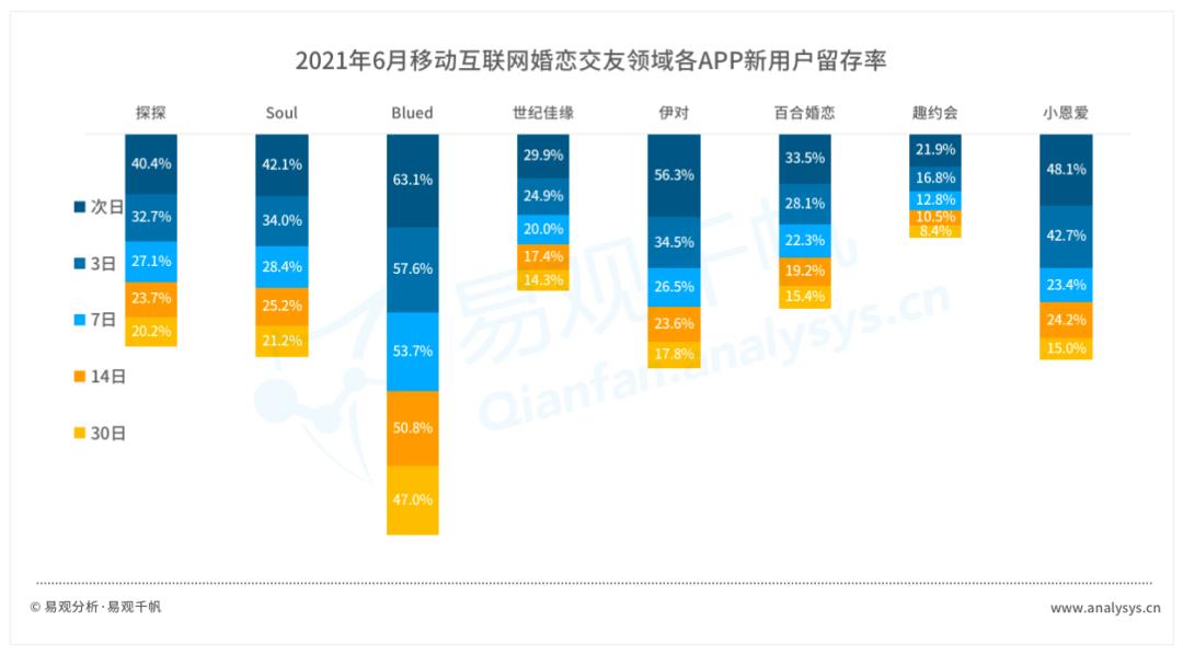 从用户粘性来看,灵魂社交中志同道合的朋友会更有话题,同性普遍更懂同性,且忠诚度较高,而探探这类偏工具属性的产品用户粘性不高,且关系链较容易迁移。