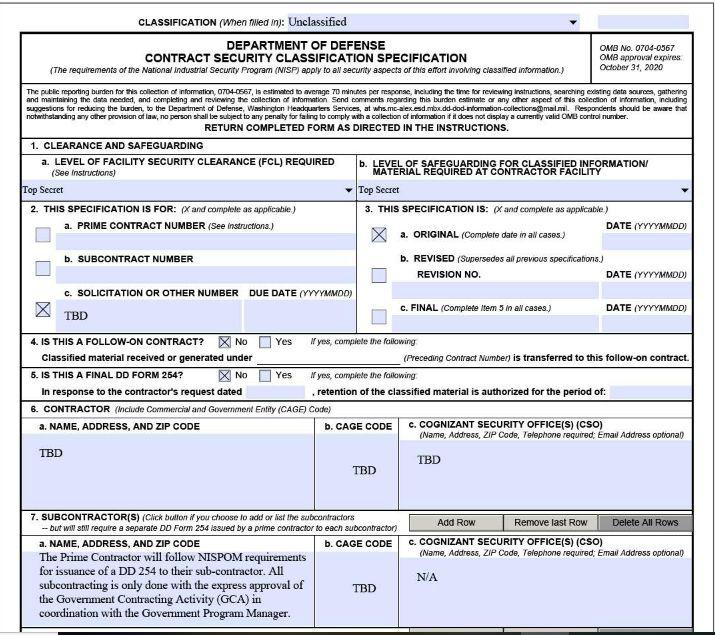 美国防部2018年3月7日公布的JEDI合同表格之一