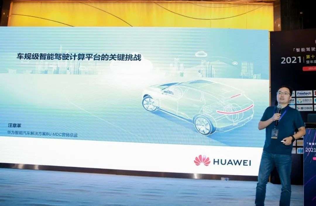 华为智能汽车解决方案BU MDC营销总监汪意革上台演讲