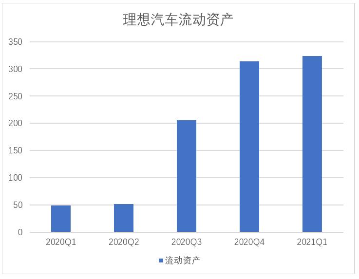 当然也有好消息,2021Q1的资产负债表显示,理想汽车的流动资产总额323.3亿元,相比2020年略涨9.4亿元,流动负债共计55.5亿元,偿债压力较小。