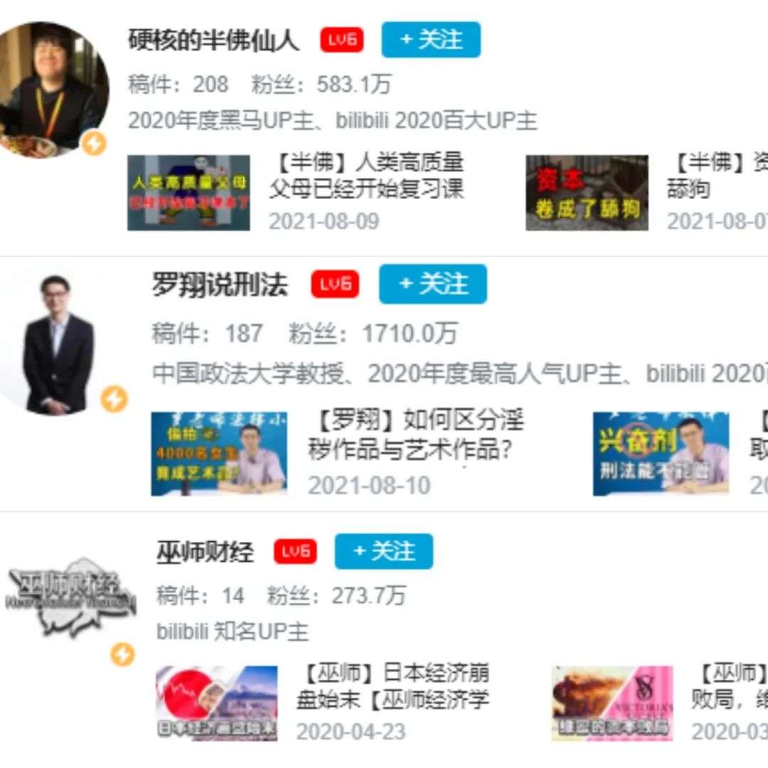 2019年末,罗翔、半佛仙人、巫师财经等创作者在B站异军突起,“泛知识视频”细分品类引发外界关注。次年2月,B站开出百万奖金和上亿流量扶持,招募知识类内容创作者;并在6月初上线知识一级分区,提升这一板块的战略地位。一年后,泛知识视频已占据B站视频播放量的45%。