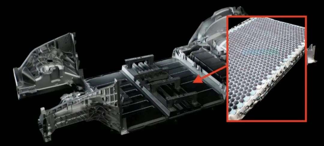最后,以 Cell to Pack 无模组形式用胶水作为受力结构的一部分直接粘贴在在下车体内的 4680 电芯,和 exoskeleton 的理念一样,让一个部件具备了多种功能。