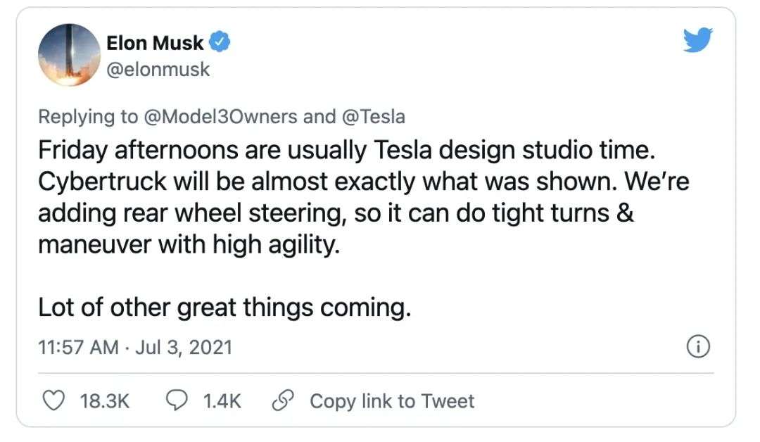 也许 Cybertruck 从美学角度来看,是一个失败的作品。反过来思考,没有和环境协同发展的造型,也恰恰表达了赛博朋克这种反乌托邦式的情感色彩。与其说这台车是特斯拉企业愿景的载体,不如相信它更像是马斯克内心那部分叛逆的体现。