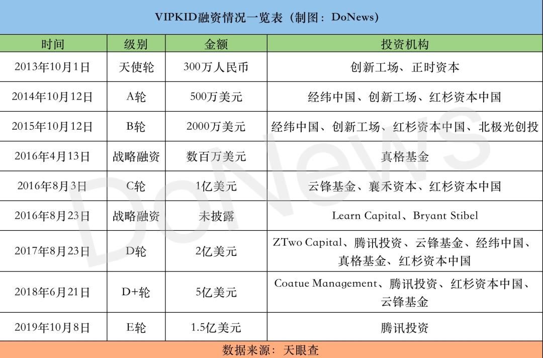 VIPKID融资情况一览表|DoNews