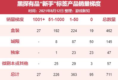 游戏新知从剧本杀分发平台黑探有品上进行了采样,以贴有“新手”的低难度本为例,收集到了711款产品,其中价格不一,类型也有所区别。