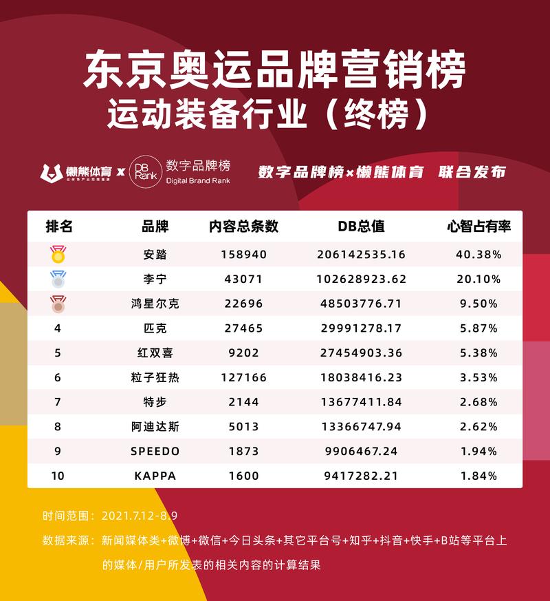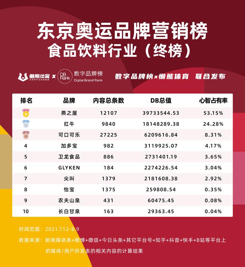 01 东京奥运会品牌营销榜终榜(7.12-8.9)