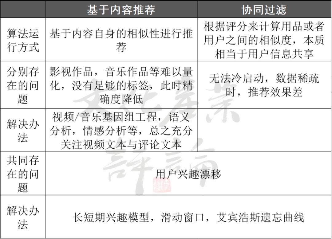 基于内容的推荐算法需要耗费大量人力,协同过滤算法则难以应对缺乏数据的“冷启动”过程。此外,两种算法所共同面临的另一个难题是用户兴趣漂移,即用户的兴趣点随着时间变化,长期推送相似的内容会让用户感到乏味。为此,许多模型通过加入艾宾浩斯遗忘曲线,滑动窗口,长短期兴趣模型等方法进行改进。