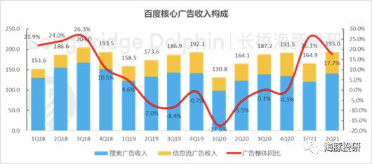 其中,剔除爱艺奇广告收入,二季度百度以搜索+信息流为主的核心广告收入为193亿元,同比增长18%,增长同样在放缓状态。