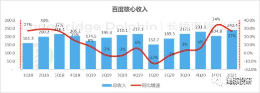 本季度百度核心收入 240亿元,同比增长27%,基本在公司原本在指引(20% 至 33%)的中间位置,小幅高于市场预期。