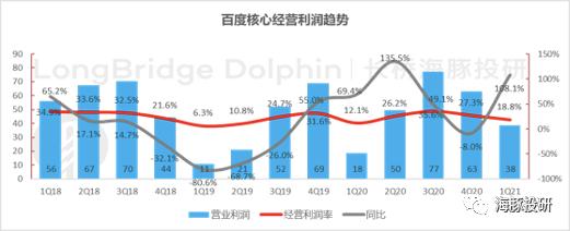 本季度,百度核心的经营利润 46亿,同比反而下降了7%,经营利润率 19%。