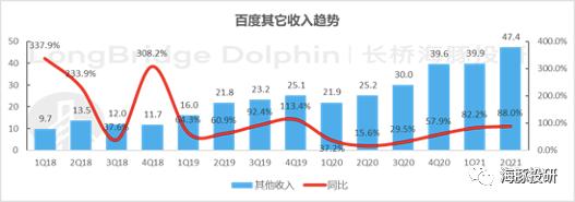百度核心中其他收入(软硬一体的智能业务,含智能云、智能音箱与阿波罗自动驾驶等)二季度 47亿,同比增长接近90%,低基数下仍在加速增长中。