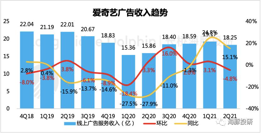 受益于经济的回暖复苏,影视行业的内容生产、供给、排期工作进度相继跟上,不管怎样,广告主的投放意愿相比去年同期都有了一定的反弹。二季度爱奇艺实现广告收入18亿元,同比增长15%,基本介于市场预期区间,主要受益于品牌广告的修复。