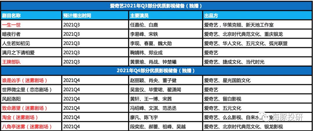 最后,奉上爱奇艺2021年下半年的优质内容储备汇总,热心的海豚君已经标出了热度较高的剧目。