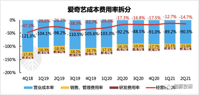 二季度三费费率环比均略有提升。从历史发展经验来看,二季度的费用投入相比一季度都会扩张。海豚君猜测,考虑到三季度暑期旺季,平台会提前一个季度进行营销造势,但此时影视作品还没有订阅和广告收入,因此体现在二季度的销售费用率会相应较高。