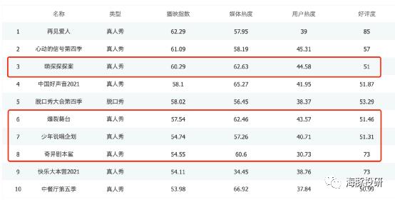 而在综艺上,原本二季度要播出的热门综艺也相继在三季度播出,在播放热度榜上,爱奇艺相对领先,但优势未明显拉开,芒果TV、腾讯视频紧随其后。
